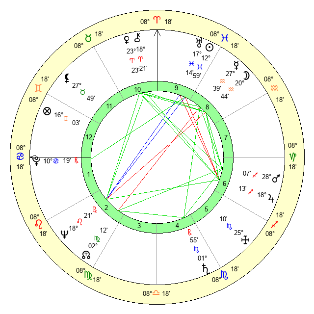 | Mars | 27 Sagittarius 46 | 17 Cancer 20 | 25 Aquarius 18 |