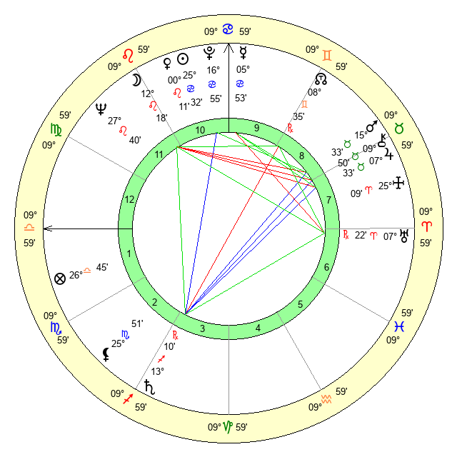 | Venus | 29 Cancer 58 | 15 Gemini 14 | 29 Scorpio 28 |