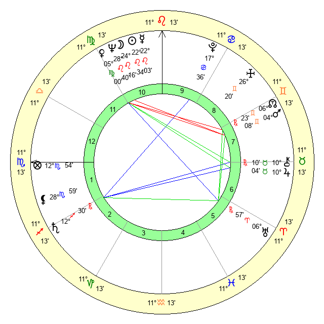 | Mercury | 21 Leo 11 | 5 Leo 10 | 12 Scorpio 19 |