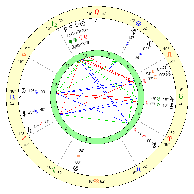 | Neptune | 28 Leo 53 | 1 Aries 36 | 1 Virgo 23 |