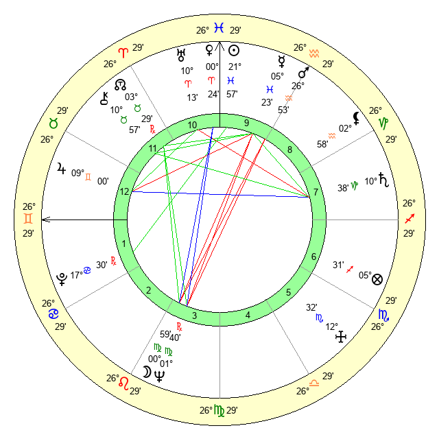 | Neptune | 1 Virgo 40 | 29 Pisces 21 | 1 Virgo 7 |