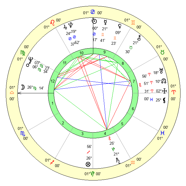 | Sun | 29 Gemini 53 | 1 Cancer 6 | 0 Libra 15 |