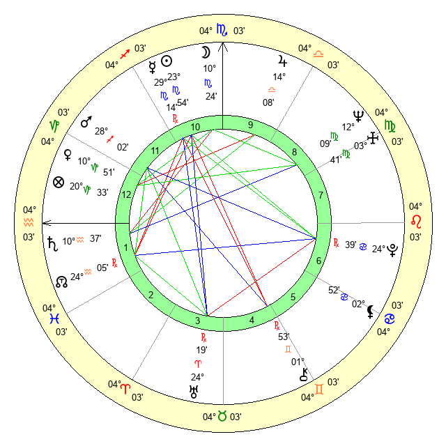 | Neptune | 12 Virgo 9 | 29 Pisces 31 | 11 Virgo 23 |