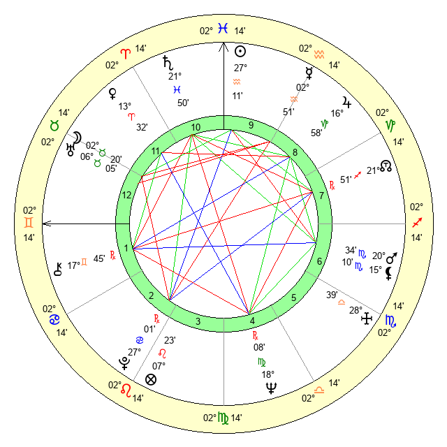 | Mars | 20 Scorpio 34 | 17 Cancer 24 | 29 Scorpio 51 |