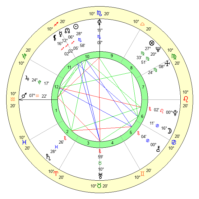 | Neptune | 20 Virgo 51 | 29 Pisces 28 | 20 Virgo 21 |