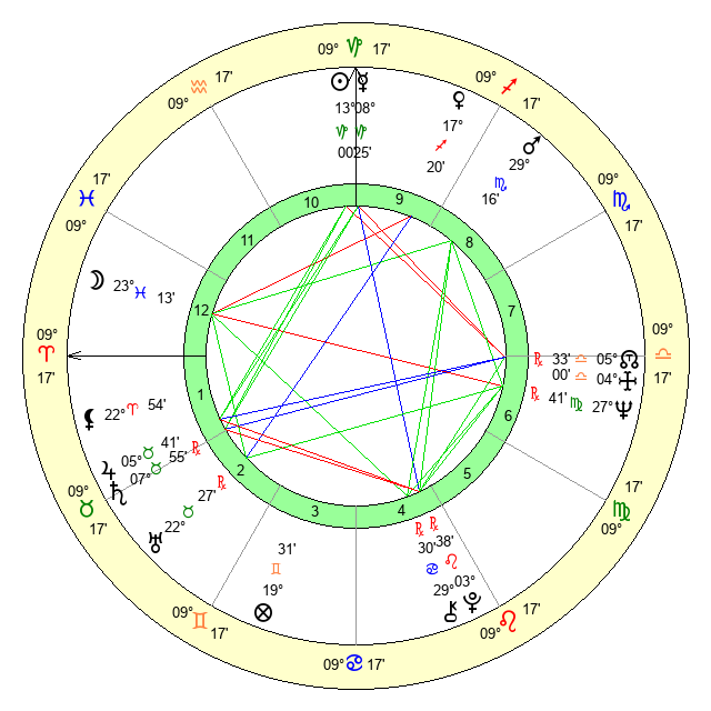 | Moon | 17 Pisces 29 | 10 Cancer 53 | 23 Aries 38 |
