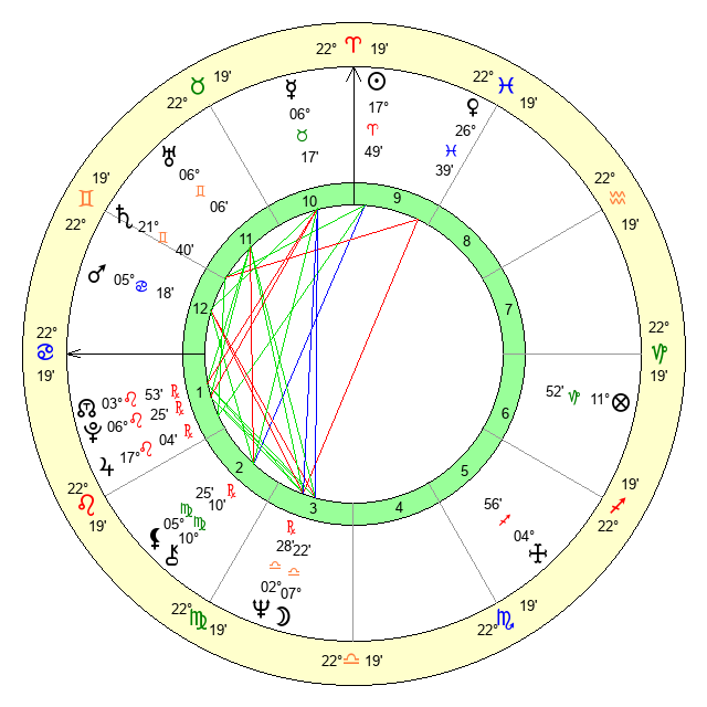 | Sun | 17 Aries 17 | 17 Aries 39 | 5 Cancer 26 |