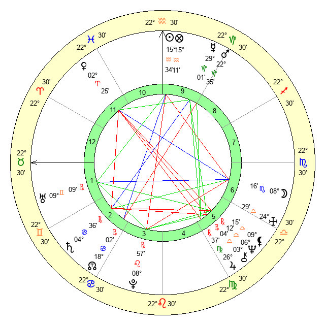 | Sun | 15 Aquarius 3 | 15 Aquarius 39 | 4 Taurus 39 |
