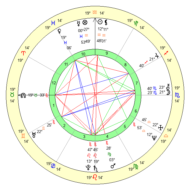 | Moon | 15 Scorpio 14 | 3 Aries 5 | 1 Virgo 57 |
