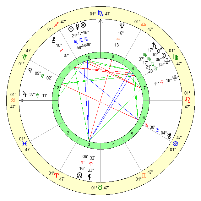 | Moon | 29 Leo 17 | 16 Virgo 3 | 12 Gemini 29 |