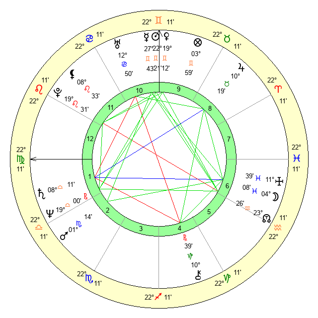 | Sun | 22 Gemini 10 | 22 Gemini 31 | 1 Virgo 59 |