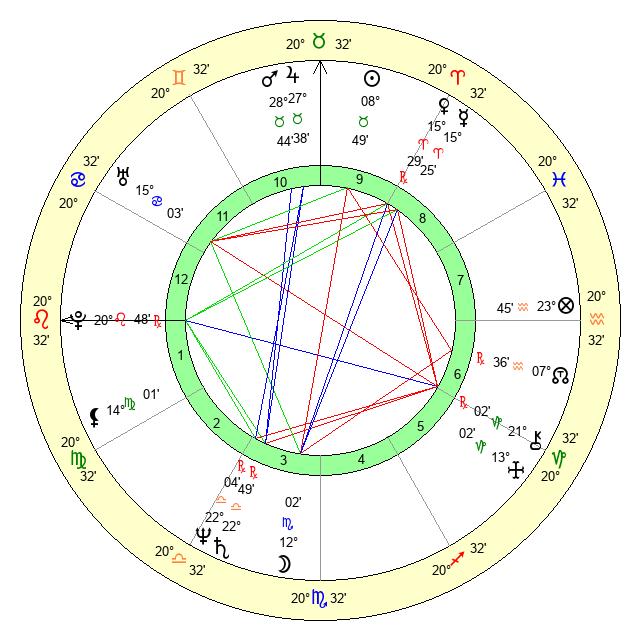 | Venus | 15 Aries 32 | 29 Pisces 13 | 2 Gemini 57 |