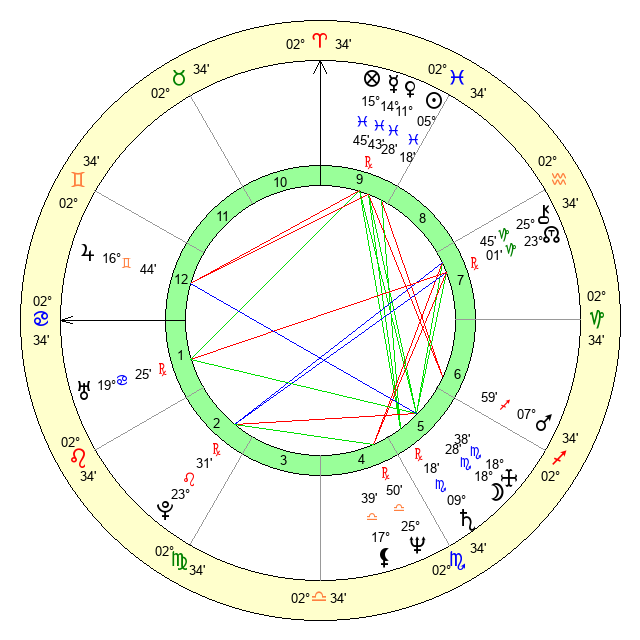 | Moon | 16 Scorpio 7 | 16 Capricorn 53 | 2 Cancer 21 |