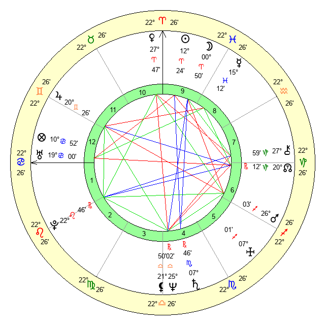 | Venus | 27 Aries 15 | 26 Pisces 58 | 23 Cancer 32 |