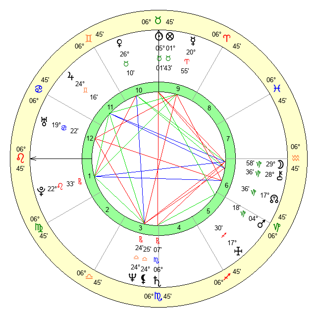 | Saturn | 6 Scorpio 43 | 27 Pisces 10 | 3 Scorpio 10 |