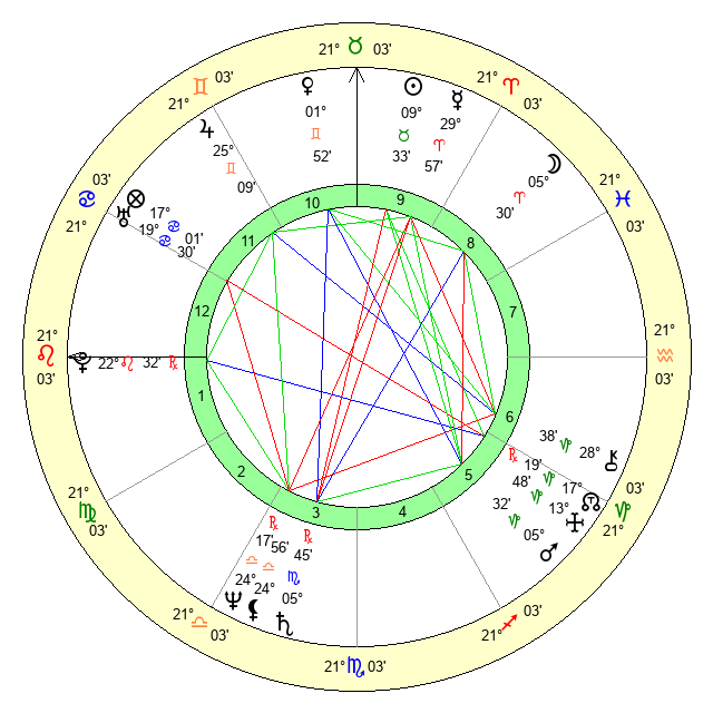 | Sun | 9 Taurus 23 | 10 Taurus 10 | 17 Cancer 28 |