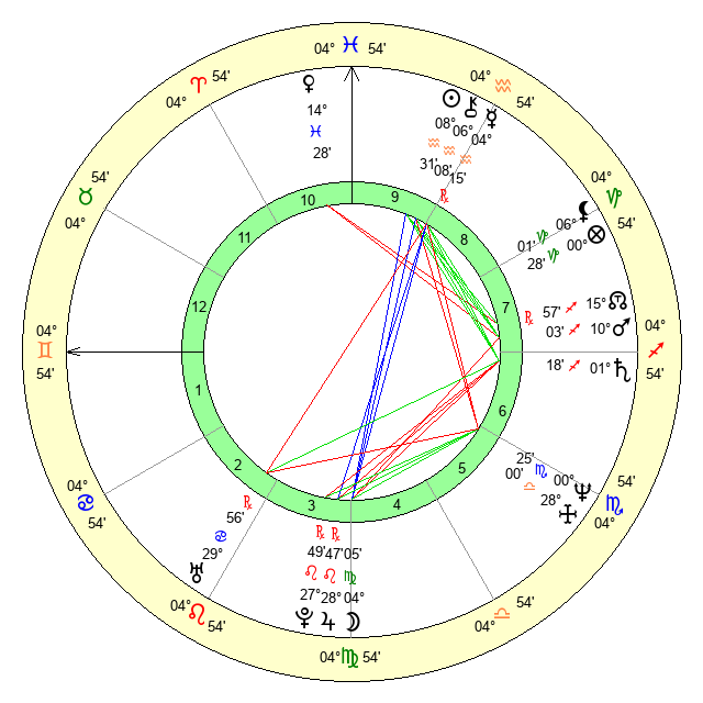 | Neptune | 0 Scorpio 25 | 27 Pisces 53 | 29 Libra 22 |