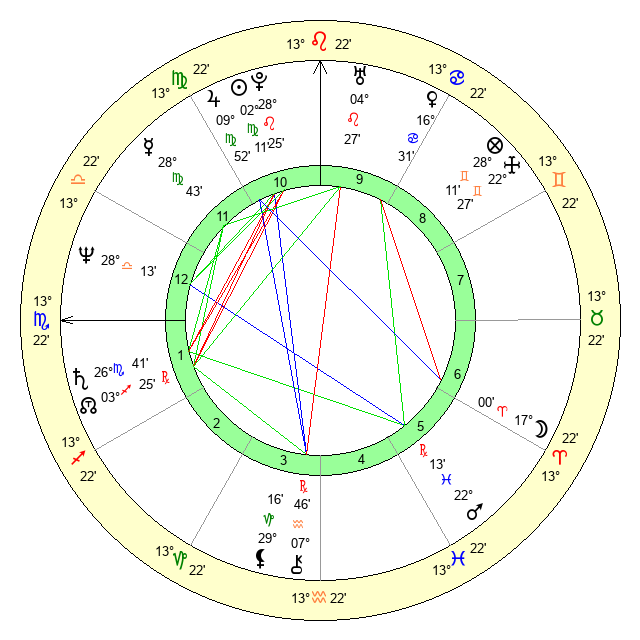 | Moon | 14 Aries 40 | 25 Virgo 59 | 4 Scorpio 27 |