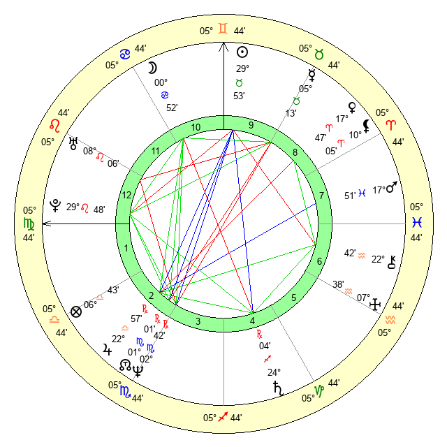 | Moon | 28 Gemini 35 | 10 Pisces 9 | 21 Sagittarius 13 |