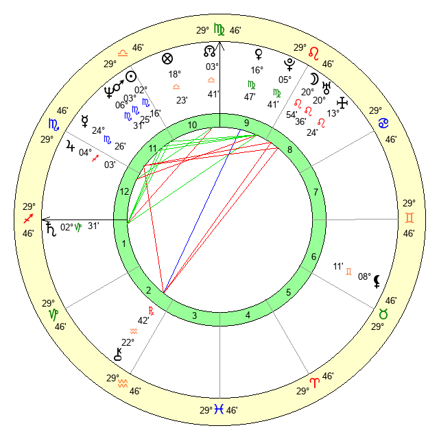 | Venus | 16 Virgo 38 | 15 Libra 24 | 27 Scorpio 30 |