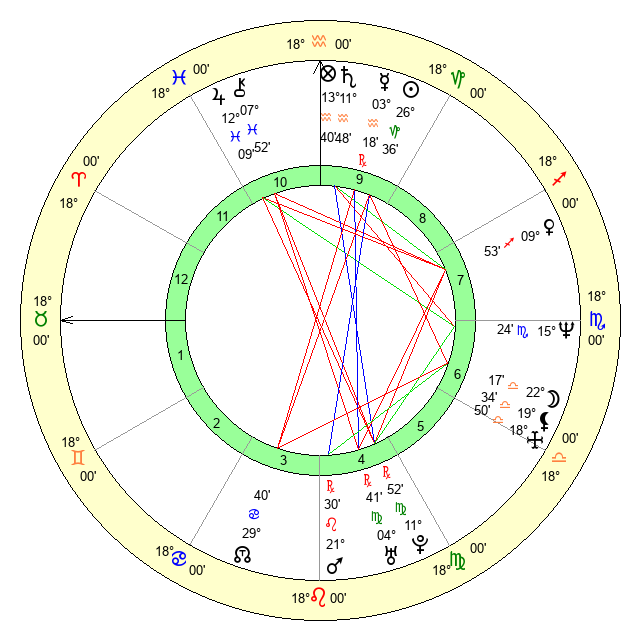 | Uranus | 4 Virgo 44 | 23 Taurus 21 | 2 Virgo 14 |