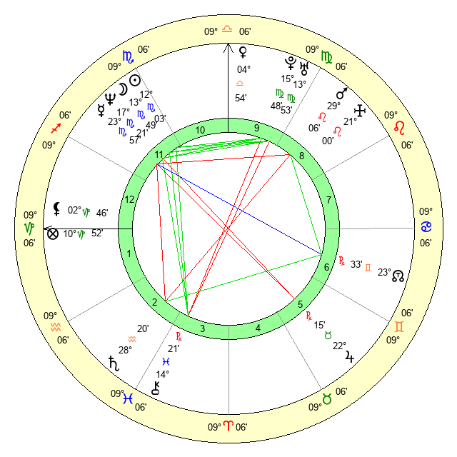 | Neptune | 17 Scorpio 21 | 29 Pisces 43 | 19 Scorpio 24 |