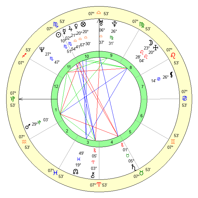 | Sun | 10 Scorpio 40 | 11 Scorpio 5 | 7 Capricorn 22 |