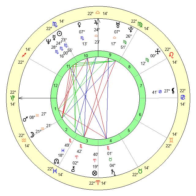 | Jupiter | 24 Libra 15 | 25 Cancer 8 | 3 Scorpio 29 |