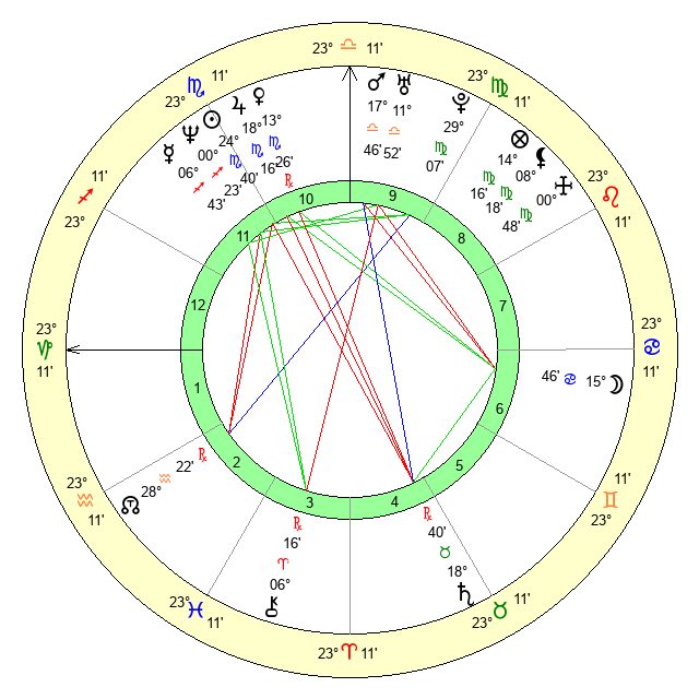 | Neptune | 0 Sagittarius 23 | 29 Pisces 30 | 2 Sagittarius 17 |