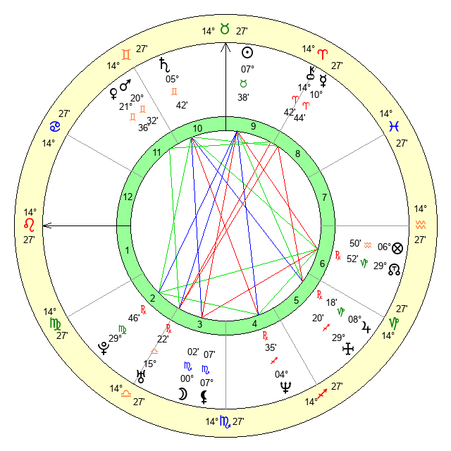 | Saturn | 5 Gemini 54 | 27 Pisces 22 | 12 Gemini 39 |