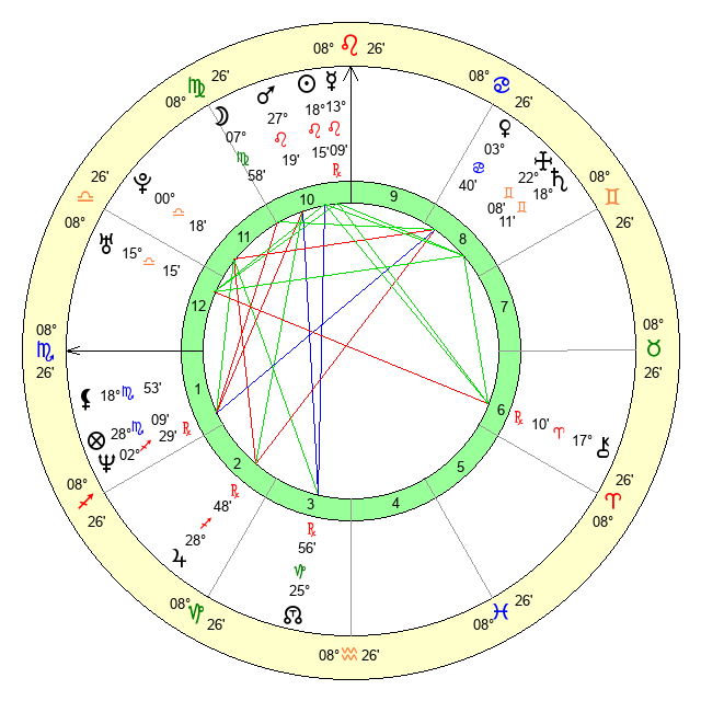 | Mars | 26 Leo 58 | 2 Libra 4 | 0 Libra 50 |