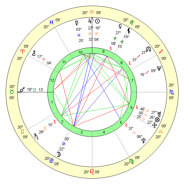 | Moon | 22 Cancer 15 | 15 Taurus 53 | 1 Gemini 11 |
