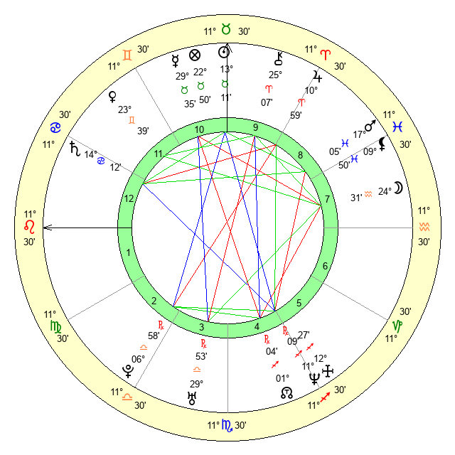 | Moon | 24 Aquarius 26 | 10 Leo 31 | 25 Sagittarius 50 |