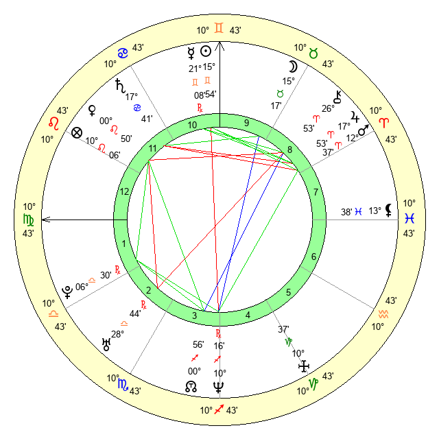 | Sun | 15 Gemini 54 | 16 Gemini 47 | 3 Leo 37 |
