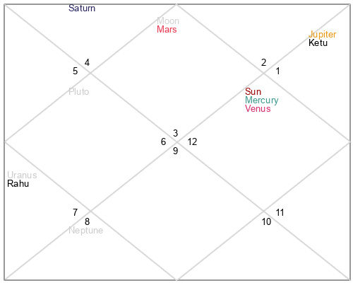 | Neptune | 13 Sagittarius 50 | 0 Aries 15 | 12 Sagittarius 49 |