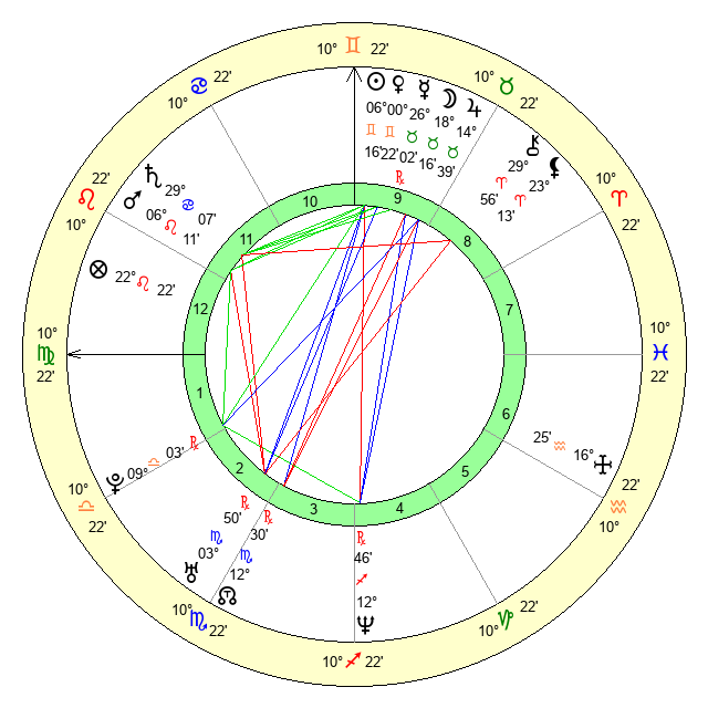 | Moon | 16 Taurus 2 | 8 Gemini 19 | 8 Pisces 26 |