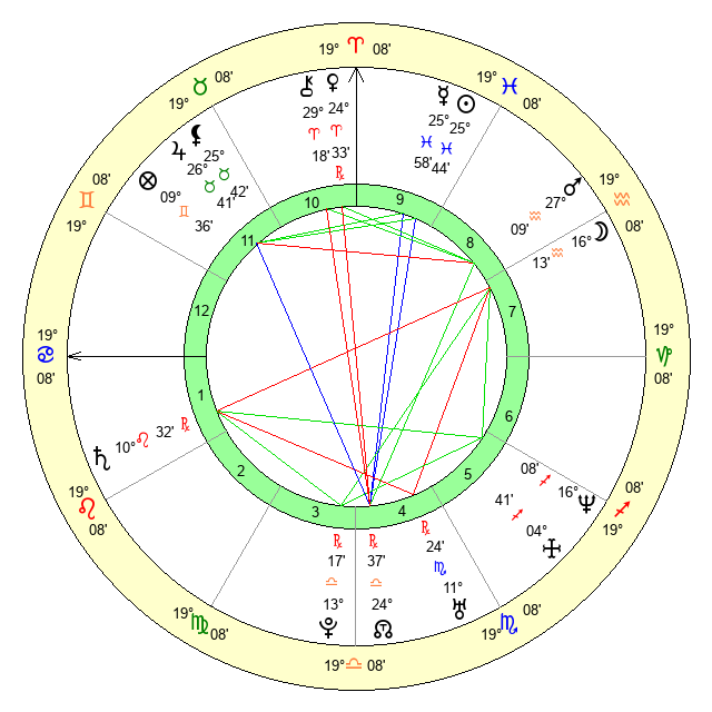 | Mars | 27 Aquarius 0 | 19 Cancer 18 | 4 Aries 20 |