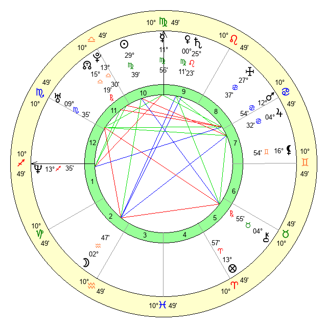 | Sun | 29 Virgo 8 | 29 Virgo 31 | 16 Scorpio 45 |
