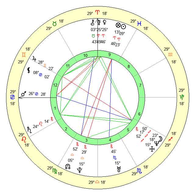 | Sun | 9 Aries 12 | 9 Aries 49 | 25 Taurus 3 |