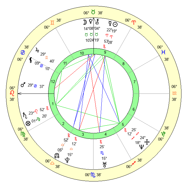 | Moon | 8 Taurus 32 | 8 Virgo 31 | 26 Capricorn 29 |