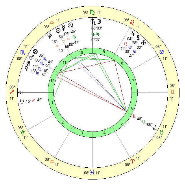 | Saturn | 8 Virgo 22 | 27 Pisces 46 | 12 Virgo 54 |