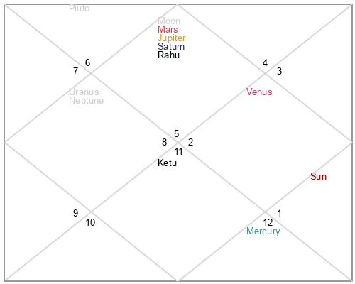 - Moon conjunct Mars, Jupiter, Saturn and Rahu — four heavy forces on your emotional center: drive, discipline and restless appetite for experience.