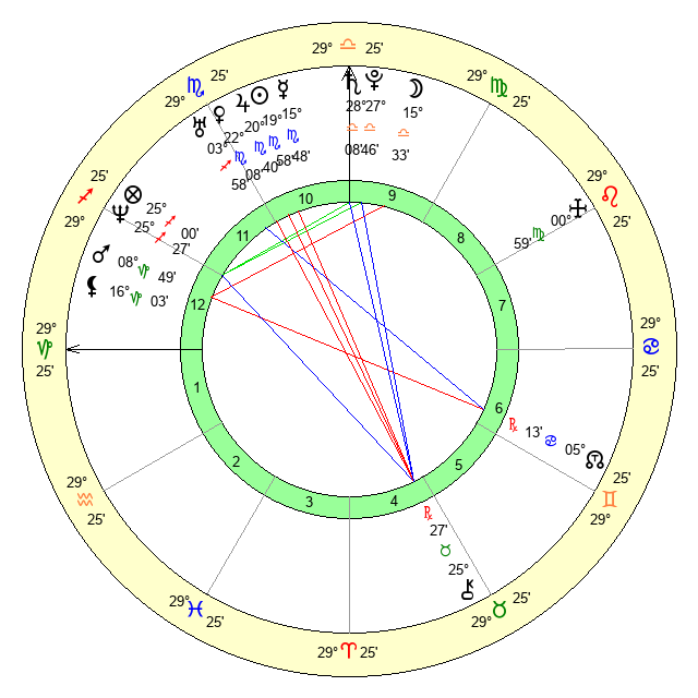 | Saturn | 28 Libra 26 | 25 Pisces 17 | 2 Scorpio 45 |