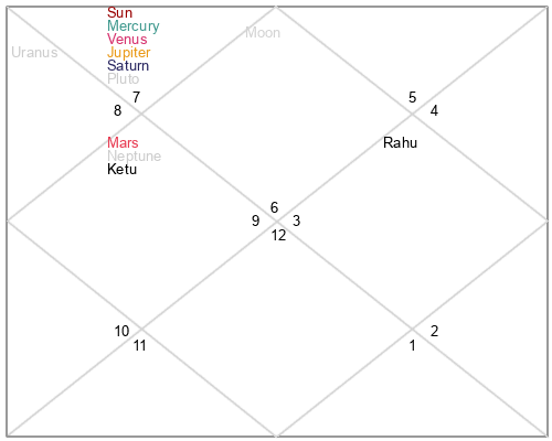 | Sun | 19 Scorpio 33 | 20 Scorpio 7 | 3 Capricorn 8 |