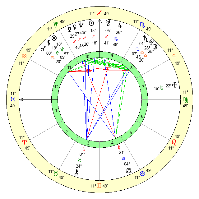 | Saturn | 1 Scorpio 26 | 25 Pisces 11 | 4 Scorpio 24 |