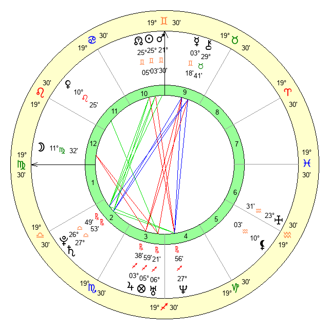 | Sun | 24 Gemini 34 | 25 Gemini 23 | 4 Leo 38 |