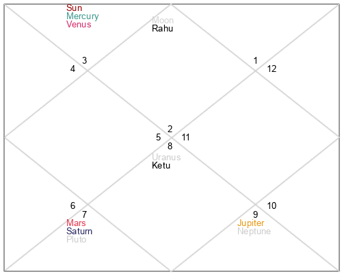 | Rahu | 5 Gemini 8 | 22 Pisces 9 | 2 Gemini 58 |