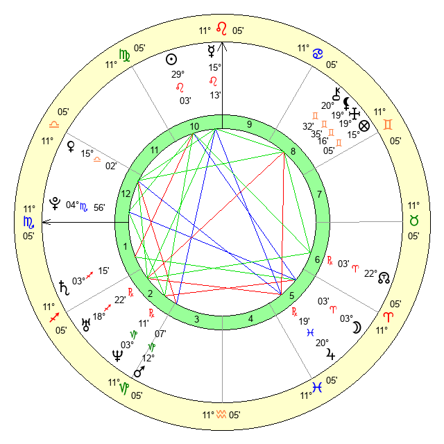 | Sun | 28 Leo 53 | 29 Leo 26 | 6 Libra 48 |