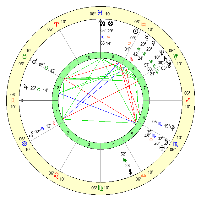 | Venus | 23 Capricorn 11 | 25 Pisces 13 | 8 Pisces 12 |