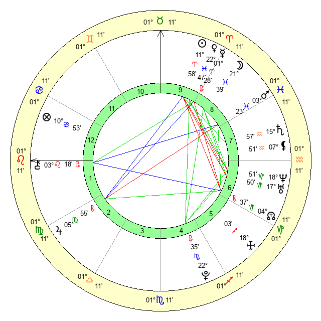 | Sun | 11 Aries 47 | 11 Aries 47 | 14 Taurus 2 |
